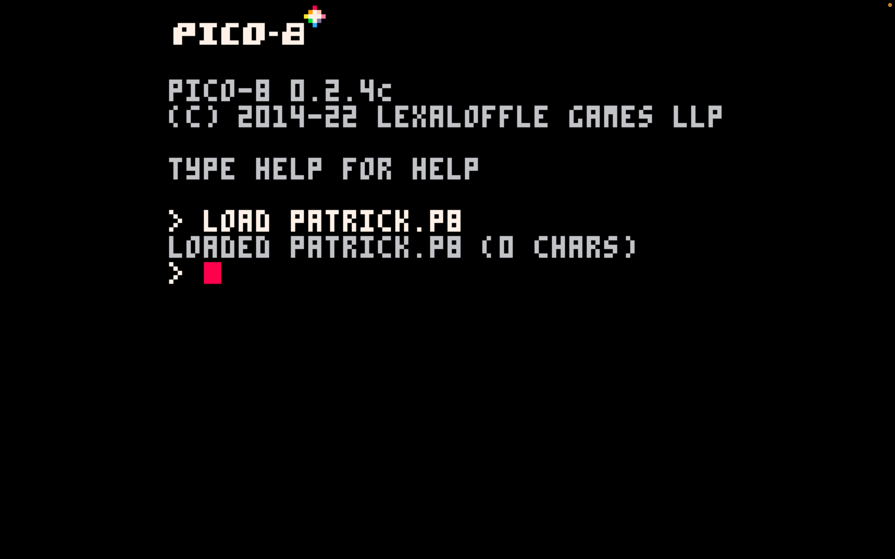 - Lade dein Spiel mit Hilfe des Befehls load name-deines-spiels.p8