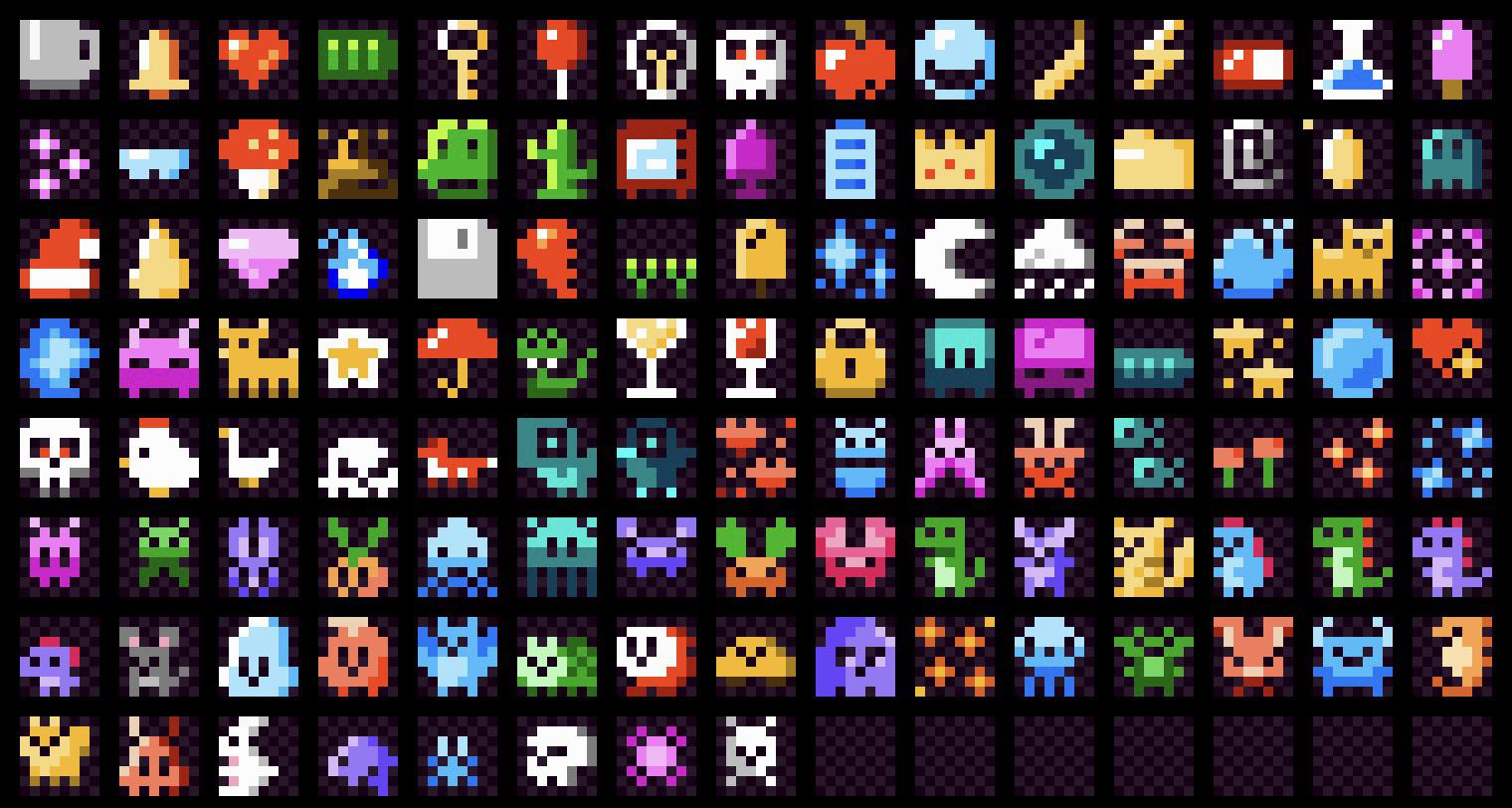 WICHTIG: Du wirst diese Farben leider nicht immer in Pico-8 finden. Es kann also sein, dass du einem dieser Sprites andere Farben geben musst.