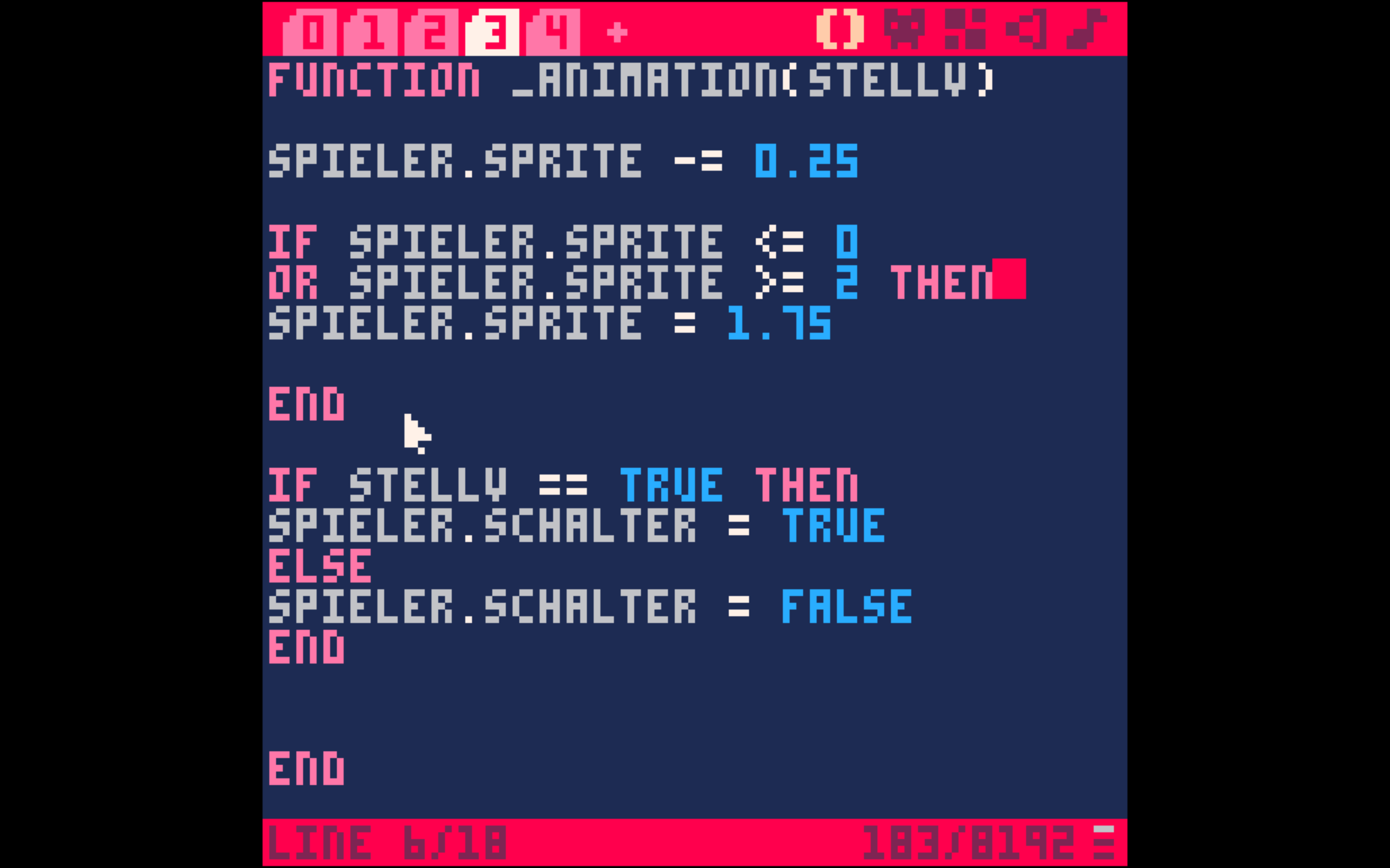 - … dass wir Pico 8 Anweisungen in der Programmiersprache LUA geben müssen, damit es das macht, was wir von ihm wollen.