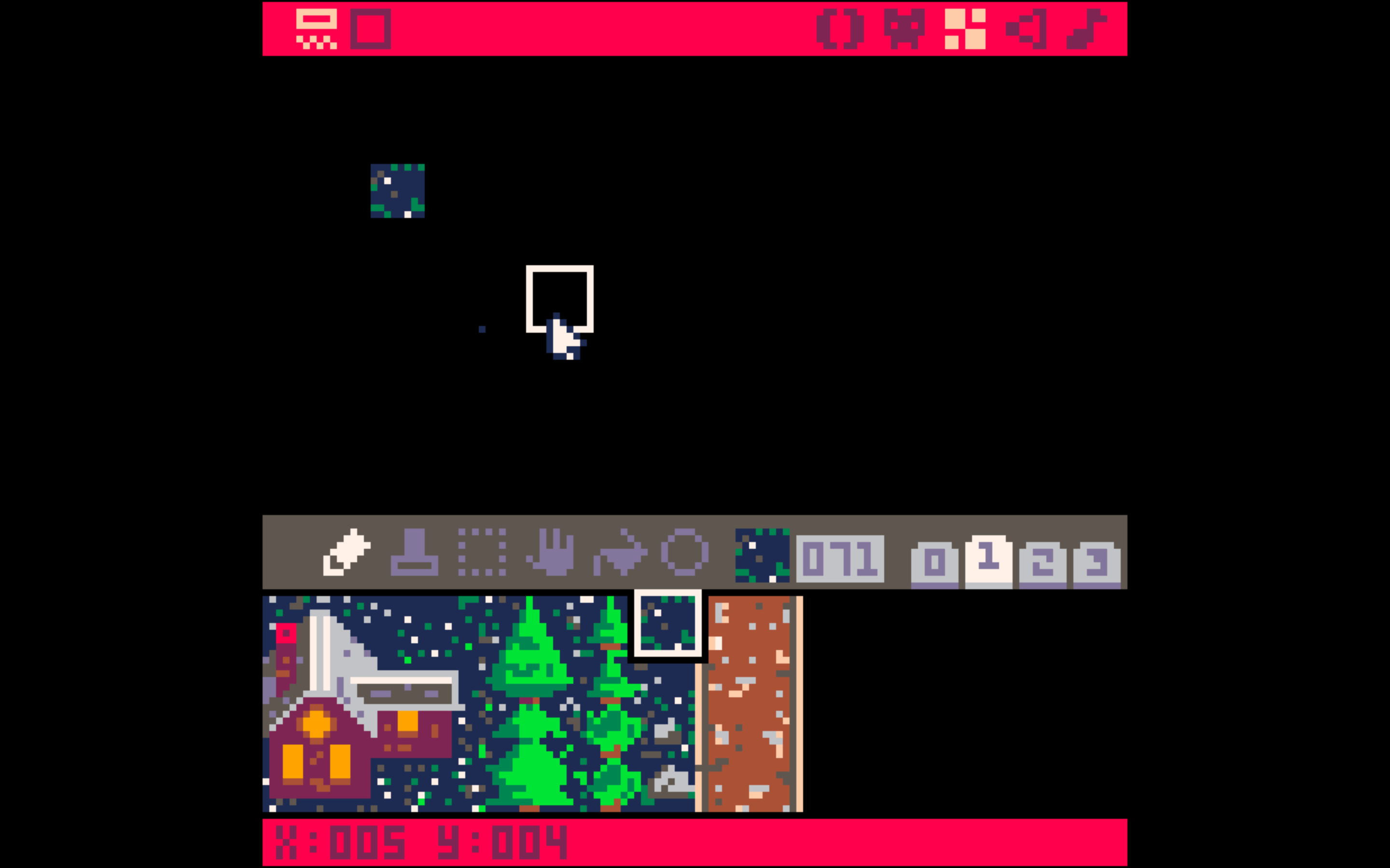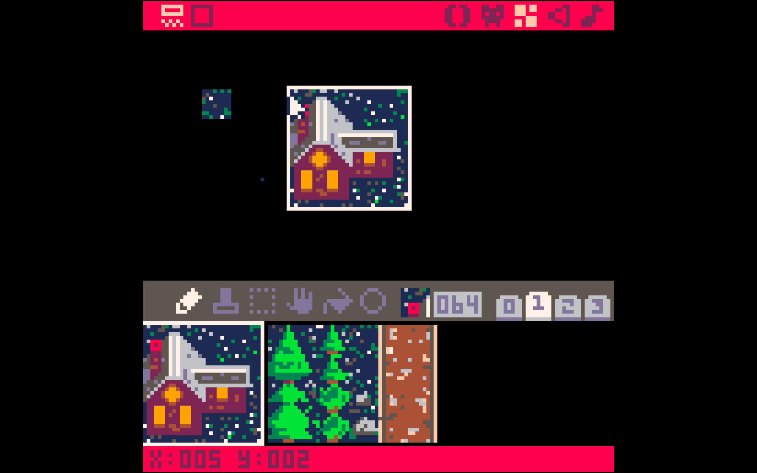 Die MAP in Pico 8 besteht aus insgesamt 127 Kacheln waagerecht und 127 Kacheln senkrecht. Insgesamt kannst du auf deiner Karte also 16.129 Kacheln zeichnen!