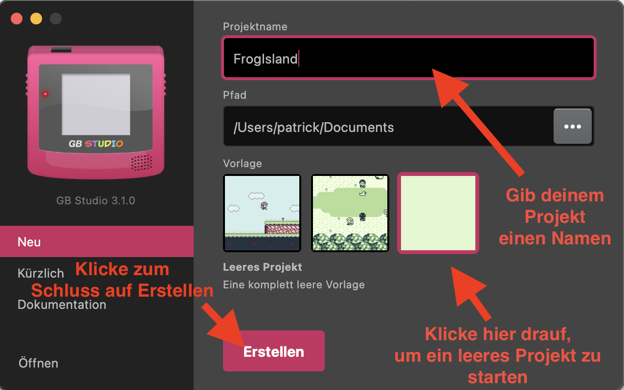 Schritt 1: Öffne das Programm und erstelle dein eigenes Spiel